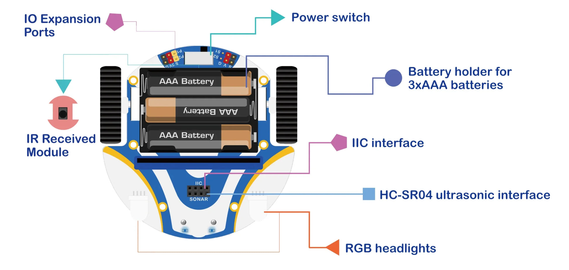 With its sleek design and integrated modules—including ultrasonic obstacle detection, line following, RGB lights, a buzzer, and more—this kit enables students and young makers to build, code, and explore real-world robotics with ease.