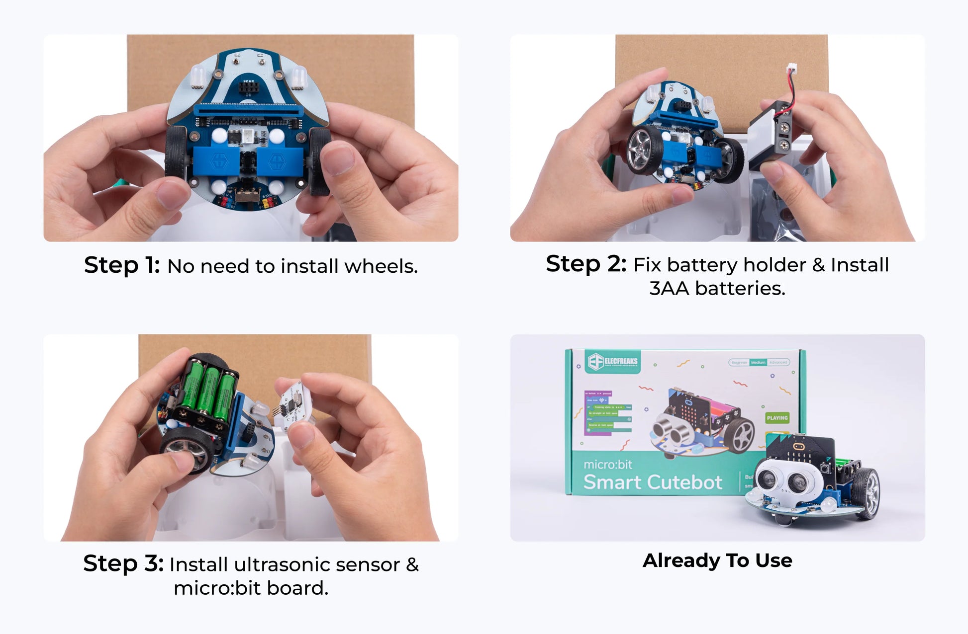 The ELECFREAKS micro:bit Smart Cutebot Kit is a powerful and approachable introduction to robotics and coding. Designed for use with the BBC micro:bit (sold separately), the Cutebot is a two-wheeled smart car that’s ideal for learners aged 8 and up.