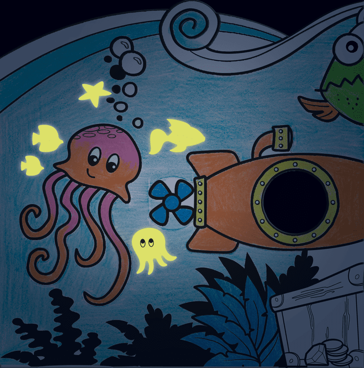 The ocean floor comes to life with colouring and glow stickers!